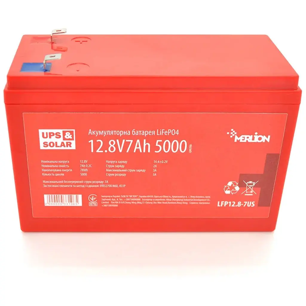 Літій-залізо-фосфатний акумулятор Merlion LiFePO4 12.8V 7AH (4S2P / BMS-10A), (151х65х97) for UPS, 3000 циклів LFP12.8-7US