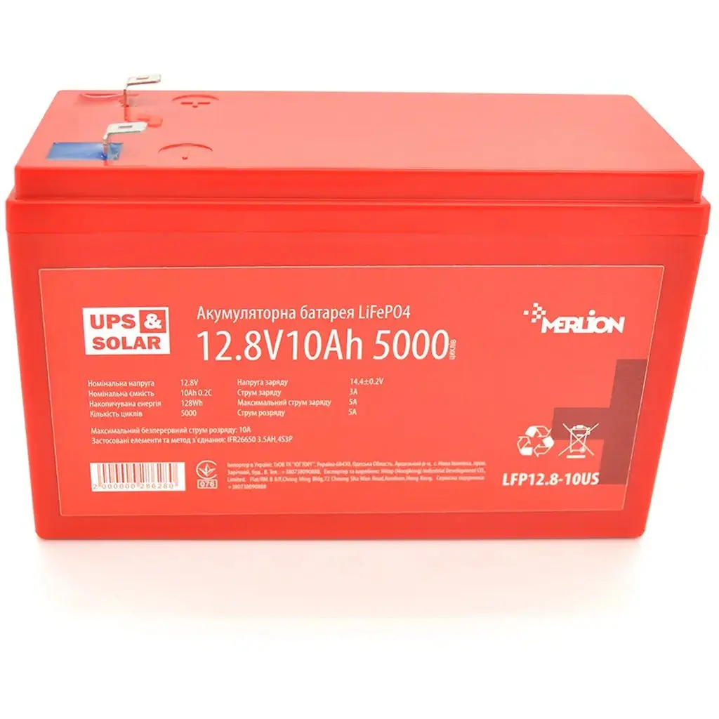 Літій-залізо-фосфатний акумулятор Merlion LiFePO4 12.8V 10AH (4S3P/BMS-10A), (151x99x99) for UPS, до 5000 циклів, Q12