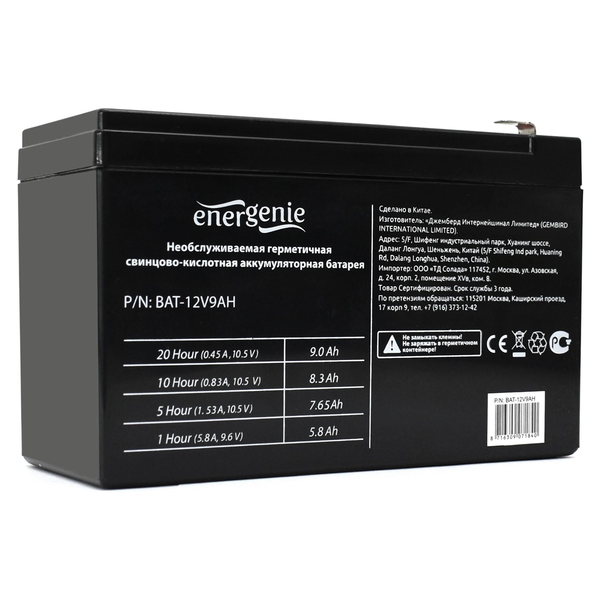 Акумуляторна батарея до ДБЖ (UPS) EnerGenie 12В 9Аг (BAT-12V9AH) / EnerGenie / Свинцево-кислотна батарея / 151х65х94 (ДxШxВ) / 12міс. / 00-00003792
