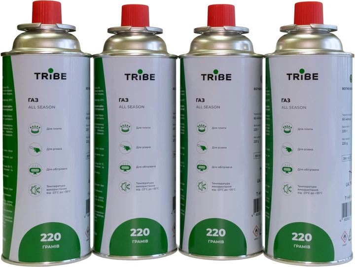 Цанговий газовий балон - картридж для туристичних плит та пальників Tribe 220 г х 4 шт (T-HF-0011)