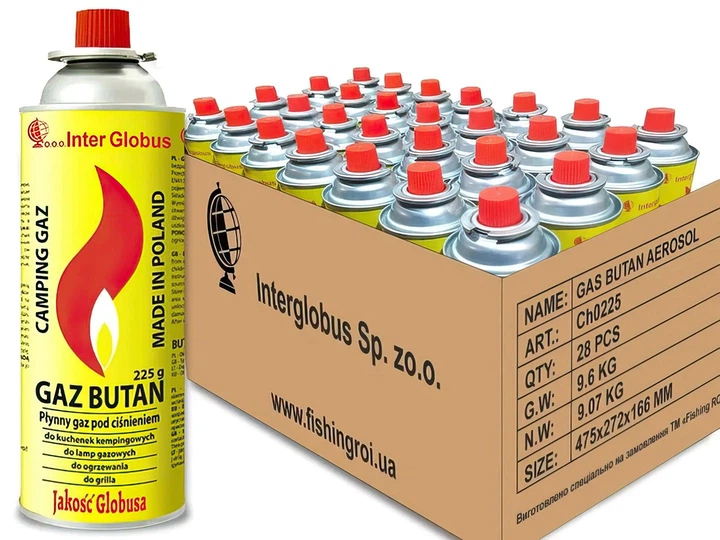 Газовий балон цанговий 227 гр універсальний картридж Inter Globus для туристичних плит пальників та обігрівачів бутан євро ц