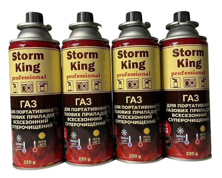 Газові балони для портативних газових пальників 4 шт Storm King, цангові