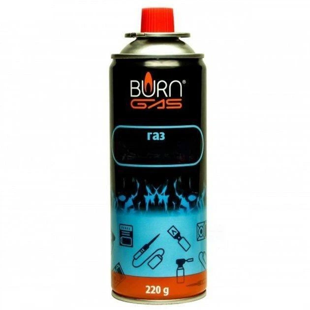Газовий балон для портативних газових приладів пальників BURN GAS 220г, пропан-бутан газ для пальників