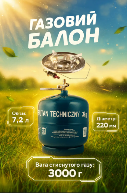 Газовий набір GZWM BT-3 + Orgaz CK-635 Пальник туристичний 7.2 л Метал NC00630