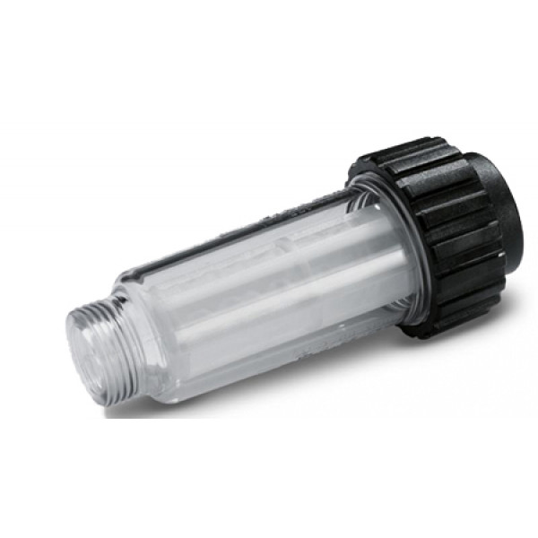 Водяний фільтр для захисту насоса апарата від частинок бруду, що містяться в воді, що подається на його вхід, і більш тривалої довговічності роботи апарату. Підходить для всіх побутових апаратів високого тиску Kärcher серії К2 – К7.