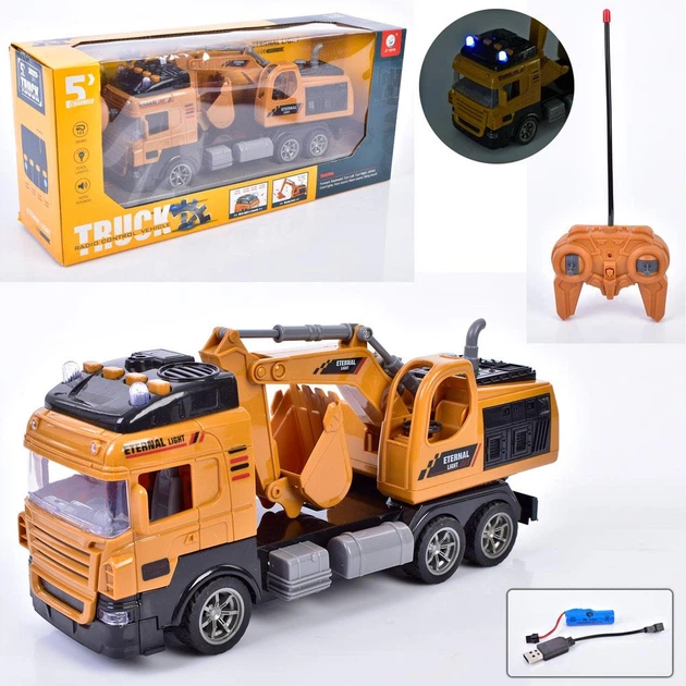 Кран на радіокеруванні 9803, на батарейках, підсвічування, жовтий колір