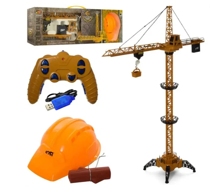 Кран на радіокеруванні акумулятор, шолом у комплекті, висота 128см, підйом вантажу, обертається 360°