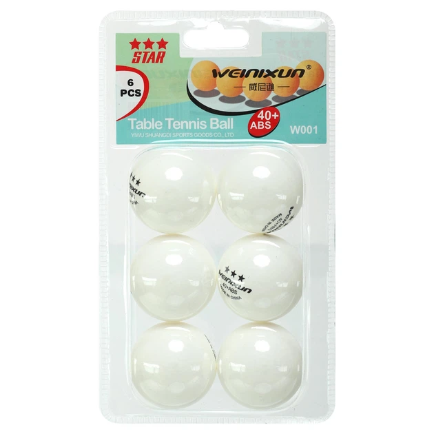 Набір м'ячів для настільного тенісу 6 штук WEINIXUN 3star (пластик, d-40мм, Білий) (W001Білий)