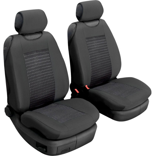 *Чохли для підголівників не входять до комплектації Сучасні текстильні чохли для автомобільного сидіння. Вони призначені для захисту оригінальної оббивки сидінь вашого авто від витирання, плям, залишених напоями, їжею, тваринами тощо. Чохли зручно знімати і чистити, тому догляд за зовнішнім виглядом салону автомобіля стане значно комфортнішим. Крім того, інтер’єр салону можна завжди урізноманітнити таким необхідним і корисним аксесуаром. Надійна система кріплення чохлів не дозволяє їм ковзати та сповзати. Ваші подорожі будуть зручними й комфортними, а самі чохли не доведеться перетягувати після кожної поїздки. На передні сидіння, з вставками.