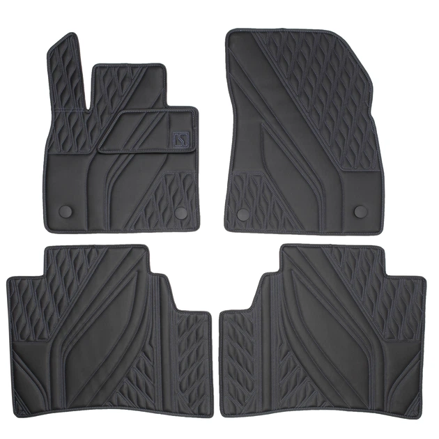 Килимки в салон Zeekr 001 '21- екошкіра Wave Style чорні з синьою ниткою (комплект)