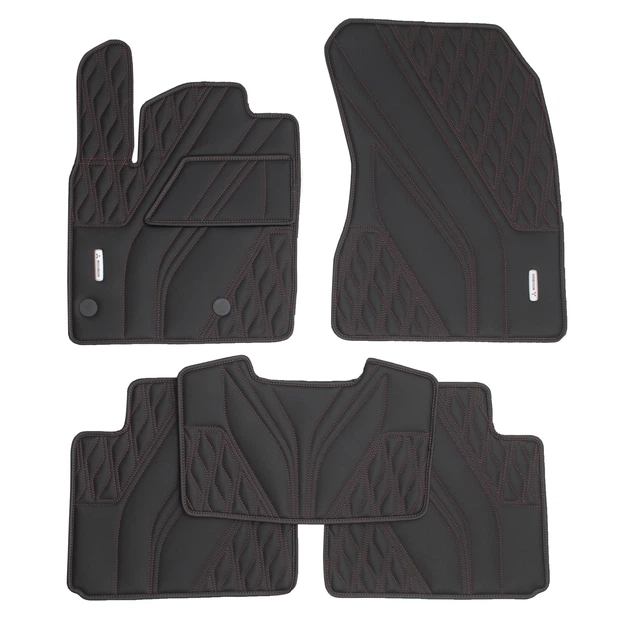 Килимки в салон Mitsubishi Outlander 4 '23 - екошкіра Wave Style чорні з червоною ниткою (комплект)