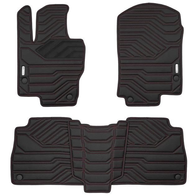 Килимки в салон Inliner для Mercedes GLE-Class W167 '19- з екошкіри Geometric Design чорні з червоною ниткою (комплект)