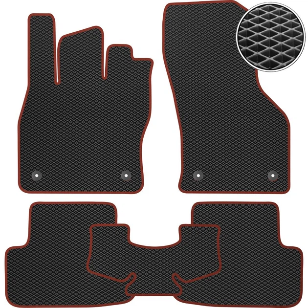 Килимки в салон Kinetic для Volkswagen Golf VII '12-EVA чорні з червоною тасьмою (комплект)