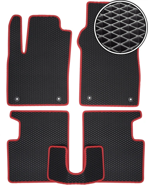 Килимки в салон Kinetic для Fiat 500 '08 - EVA-полімерні чорні з червоною тасьмою (комплект)