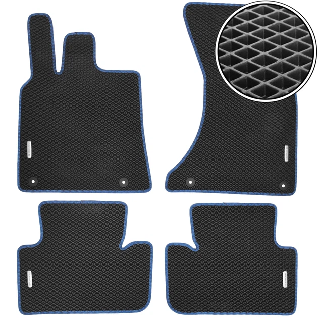 Килимки в салон Kinetic для Porsche Macan '14-EVA чорні з синьою тасьмою 4 мет. шильдика (комплект)
