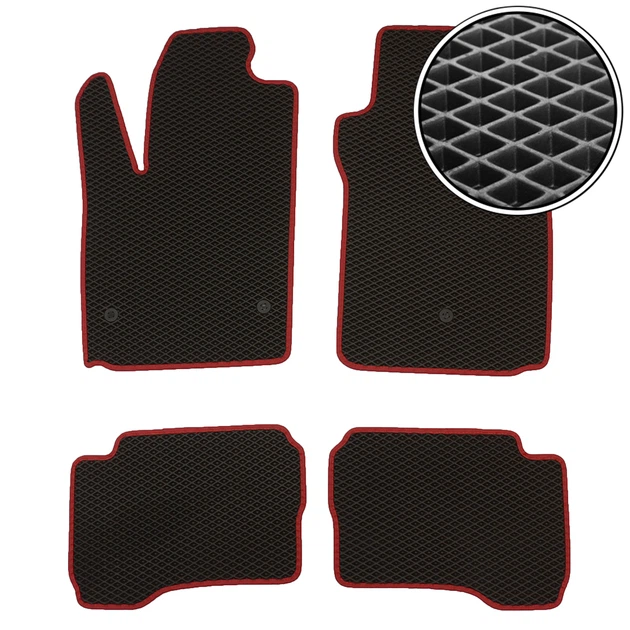 Килимки в салон Kinetic для Fiat 500 '08 - електро EVA-полімерні чорні з червоною тасьмою (комплект)