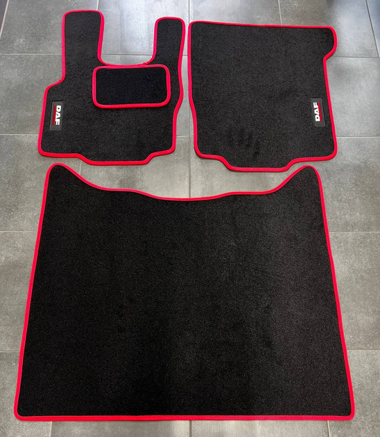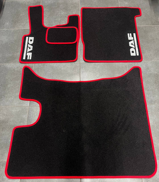 Ворсові килимки в салон для DAF XF 105 АКПП /ДАФ 105 чорні червоний кант