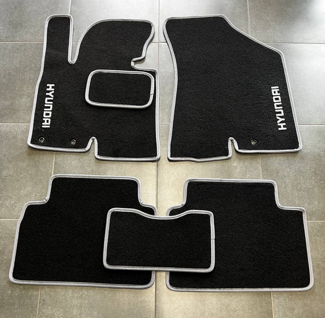 Ворсові килимки в салон для Hyundai IX35 (2010-)/Хюндай Ай ікс 35 /Чорні,білий кант