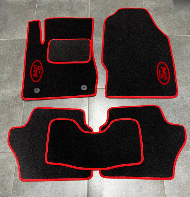 Ворсові килимки в салон для Ford Fiesta (2008-)/ Форд Фієста Європа/Чорні,червоний кант