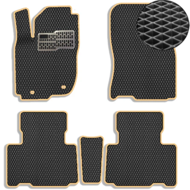 Коврики у салон EVA для Toyota RAV 4 2013-2019 ДВС / Hybrid з підп'ятником Чорні-Бежевий кант 5 шт