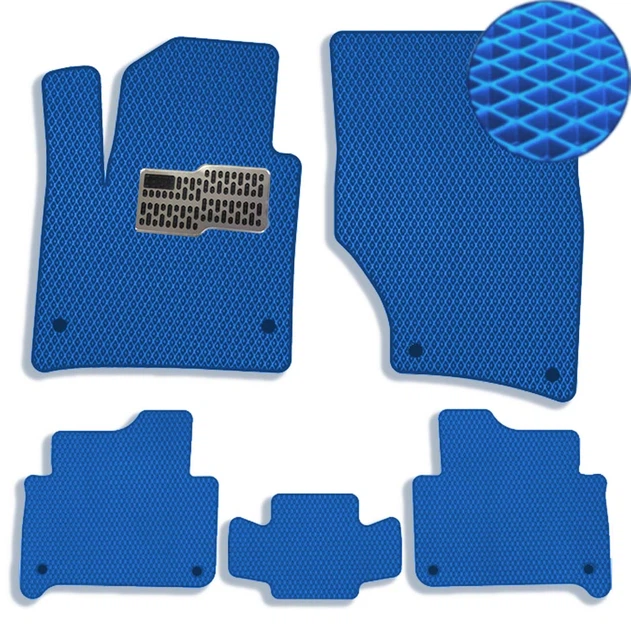 Коврики в салон EVA для X-Trail / Rogue (T32) 2014-2020 (Металевий підп'ятник) Чорні-Синій кант 5 шт