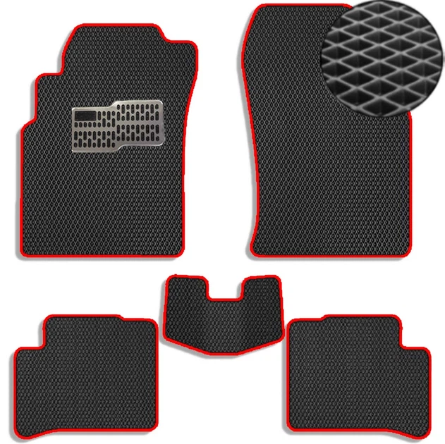 Коврики в салон EVA для Nissan Primera (Р-10) 1990-1996 з підп'ятником Чорні-Червоний кант 5 шт