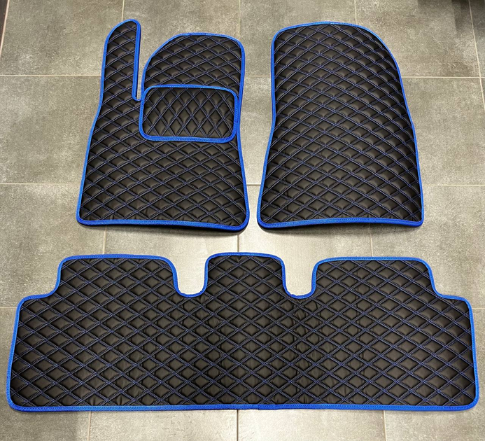 Автокилимки в салон з Екошкіри на TESLA Model 3/ Тесла Модел 3 2017, Чорний з синьою стрічкою