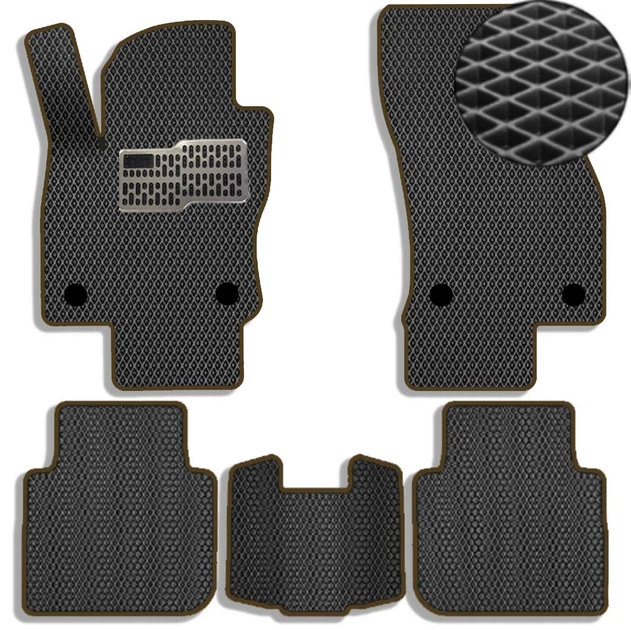 Коврики в салон EVA для Renault Duster 2015-2018 (Металевий підп'ятник) Чорні-Коричневий кант 5 шт