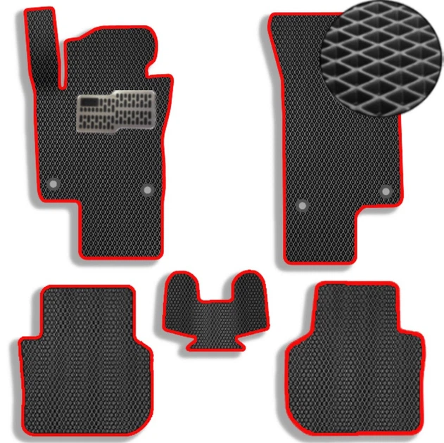 Коврики в салон EVA для Tesla Model S 2012- з підп'ятником Червоні-Червоний кант 5 шт