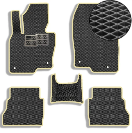 Коврики в салон EVA для Hyundai Tucson (NX4) 2021- ДВЗ (Металевий підп'ятник) Чорні-Бежевий кант 5 шт