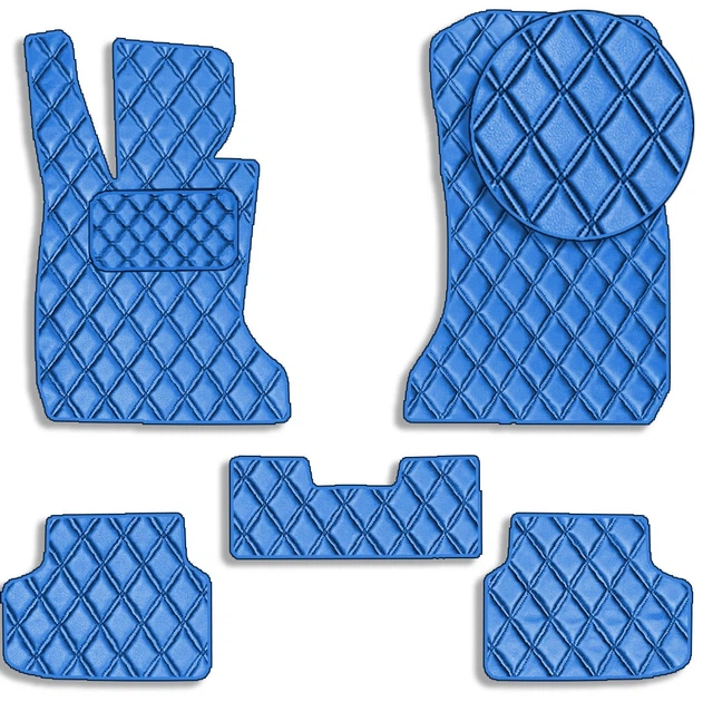 Коврики у салон для BMW 7 (F01 / F04) 2008-2015 Екошкіра з підп'ятником Синій 5 шт (Rombus)
