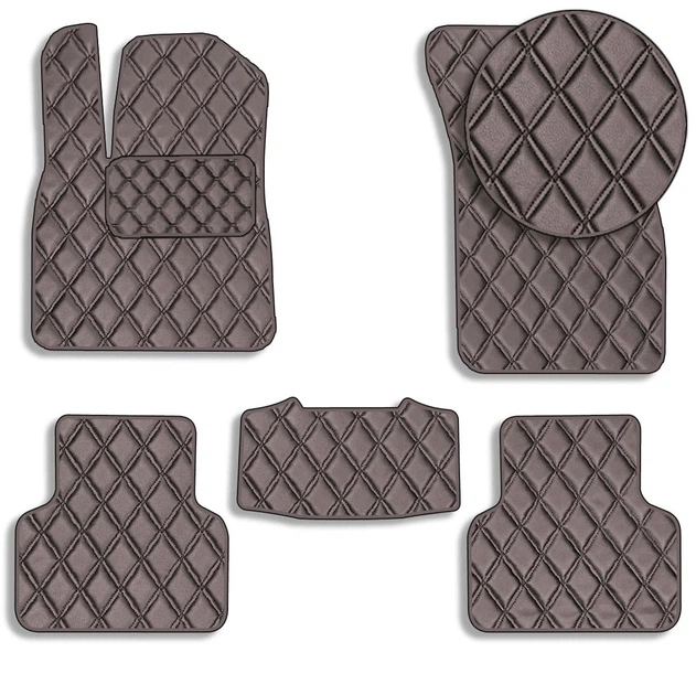 Килимки в салон для Audi Q8 2018- з підп'ятником Екошкіра Коричневі 5 шт (Rombus)