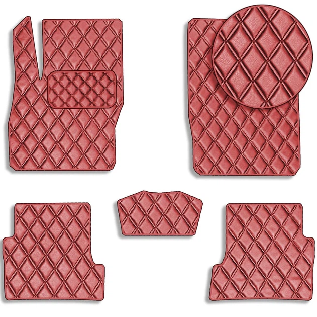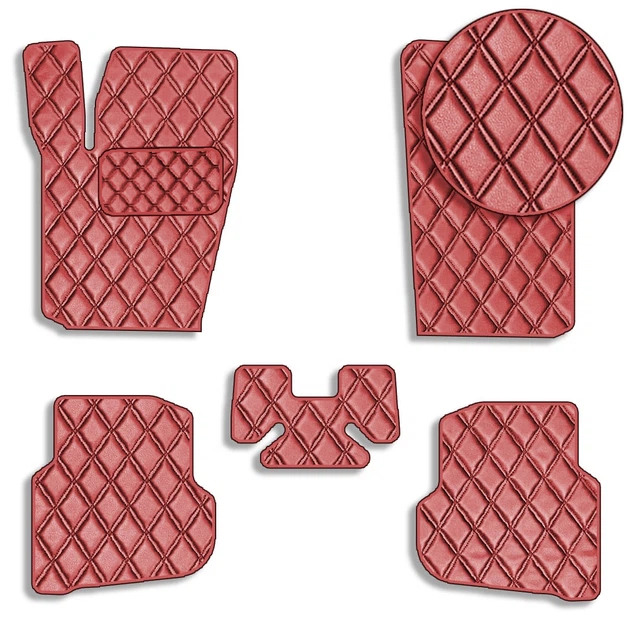 Коврики у салон для Volkswagen Polo VI 2017- Екошкіра з підп'ятником Червоний 5 шт (Rombus)