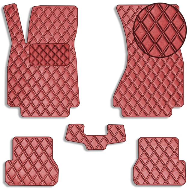 Коврики у салон для Audi A6 C7 2011-2018 Екошкіра з підп'ятником Червоні 5 шт (Rombus)