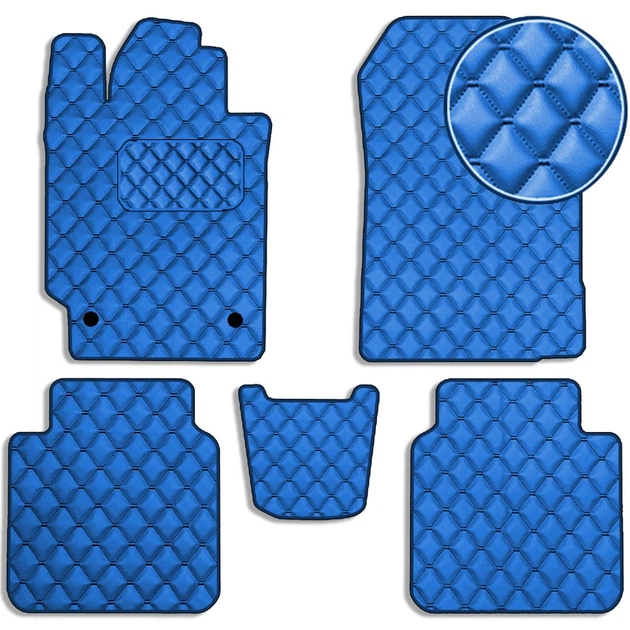 Коврики в салон Екошкіра для Tesla Model 3 2017- Чорні-Синій 5 шт (Rombus)
