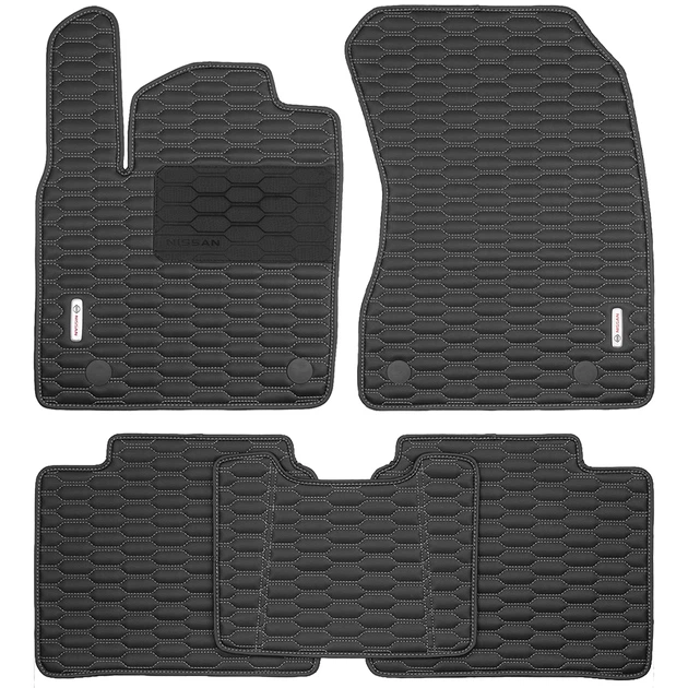 Килимки в салон Inliner для Nissan X-Trail e-Power T33 '23-гібрид з екошкіри SOTA Design чорні з сірим рядком (комплект)