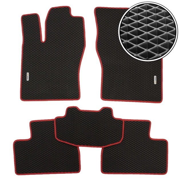 Килимки в салон Kinetic для Lada Ваз 2101-2107 '81-12 EVA чорні з червоною тасьмою підп. метал. (комплект)