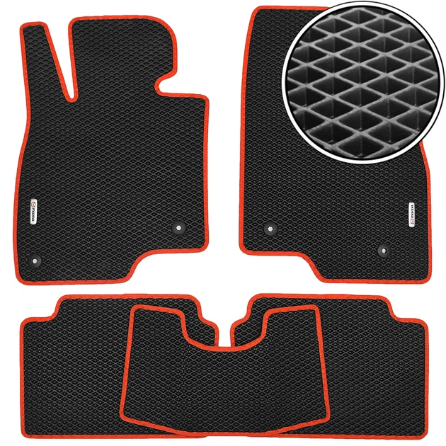 Килимки в салон Kinetic для Mazda 3'14-EVA чорні з червоною тасьмою 2 метал. шильдика (комплект)