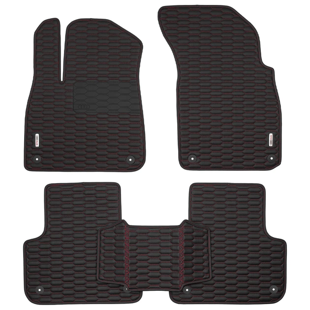 Килимки в салон Volkswagen Passat B9 '24- Geometric Design з екошкіри чорні з шильдиками (комплект)