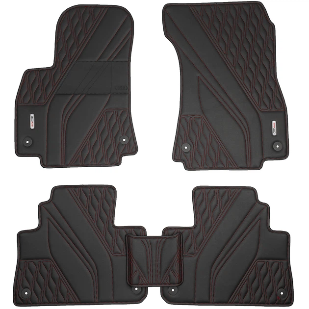 Килимки в салон Audi Q8 '18-8 кліпс з екошкіри SOTA чорні з червоною ниткою (комплект)