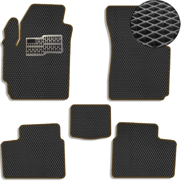 Коврики в салон EVA для Daewoo Matiz 1998-2008- з підп'ятником Чорні-Коричневий кант 5 шт