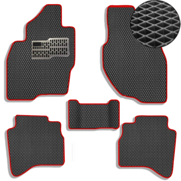 Коврики в салон EVA для Mitsubishi Pajero III Wagon 3дв. 1999-2007 з підп'ятником Чорні-Червоний кант 5 шт