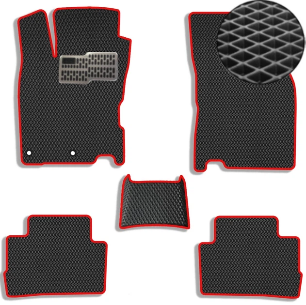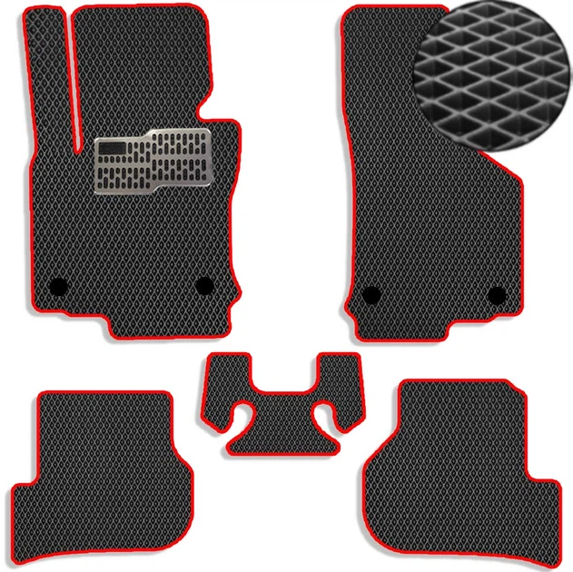 Коврики в салон EVA для Toyota Prado 120 2002-2010 (Металевий підп'ятник) Чорні-Червоний кант 5 шт