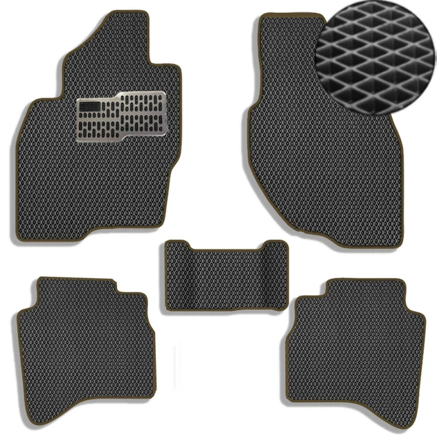 Коврики в салон EVA для Mitsubishi Pajero III Wagon 3дв. 1999-2007 з підп'ятником Чорні-Коричневий кант 5 шт