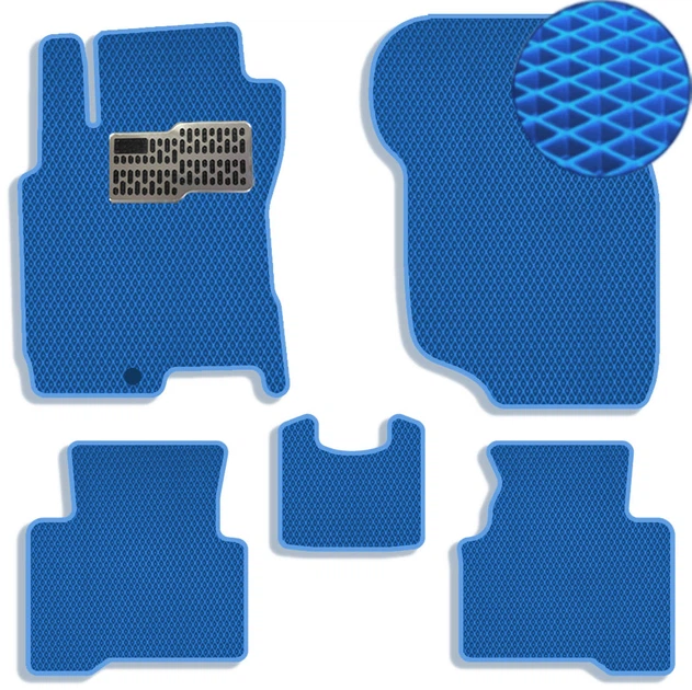 Коврики в салон EVA для Toyota Prado 120 2002-2010 (Металевий підп'ятник) Сині-Синій кант 5 шт