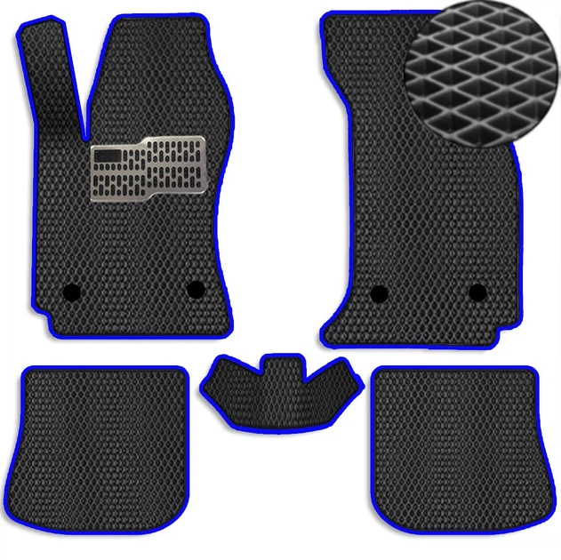 Коврики в салон EVA для Audi A4 B5 1994-2001 з підп'ятником Чорні-Синій кант 5 шт