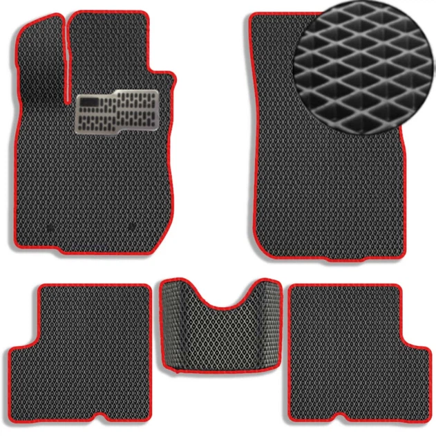 Коврики в салон EVA для Renault Duster 2015-2018 (Металевий підп'ятник) Чорні-Червоний кант 5 шт