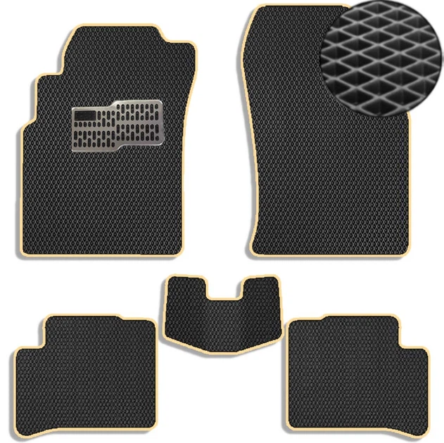 Коврики в салон EVA для Nissan Primera (Р-10) 1990-1996 з підп'ятником Чорні-Бежовий кант 5 шт