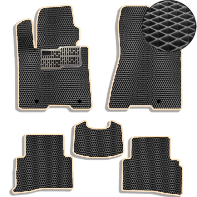 Коврики в салон EVA для Kia Sportage IV 2015-2021 з підп'ятником Чорні-Бежовий кант 5 шт