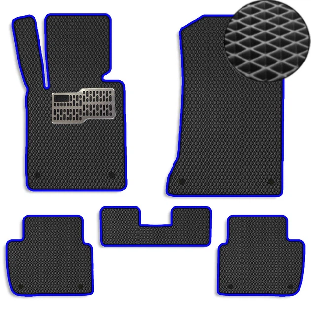 Коврики в салон EVA для BMW 3-серія (Е-46) 1998-2006 з підп'ятником Чорні-Синій кант 5 шт